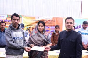 शिविर में प्रतीक के साथ-साथ प्रिया, कमलेश, भावना, नीशा, नीतू और सोफिया को भी नगर पालिका अध्यक्ष श्रीमती भारती कमेड़िया और कलेक्टर श्री आदित्य सिंह ने संबल कार्ड प्रदान किये। इसके साथ ही जनकल्याण शिविर में 2 नागरिकों को जन्म प्रमाण-पत्र तथा 2 अन्य को सामाजिक सुरक्षा पेंशन स्वीकृति संबंधी आदेश प्रदान किये गये। इस जनकल्याण शिविर में श्री शशांक मालवीय को 50 हजार रूपये, श्री राहुल चौधरी व अक्षय पंवार को 20-20 हजार रूपये तथा बंटी बंजारा और मनीष मोरी को 10-10 हजार रूपये की मदद पीएम स्वनिधि योजना के तहत प्रदान की गई। इस राशि से ये बेरोजगार युवा अपना स्वयं का व्यवसाय शुरू कर आत्म निर्भर बन सकेंगे और अपने परिवार का पालन पोषण बेहतर तरीके से कर सकेंगे।